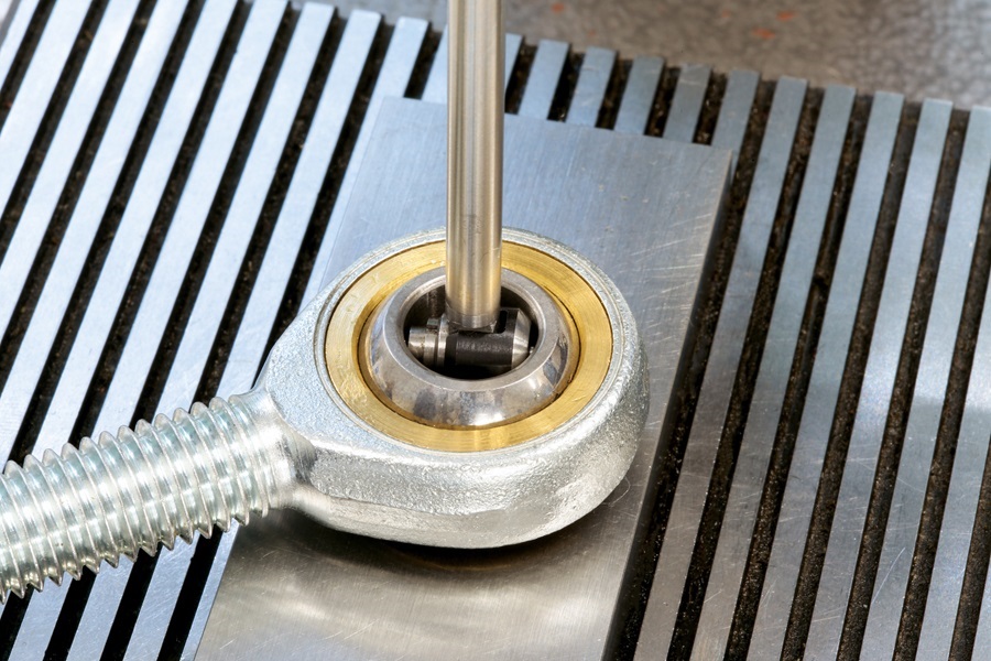 Da alle unsere Vergleichsobjekte wartungsfrei sind, war ein weiteres Testkriterium die Verarbeitung des PTFE-Gewebes in der Lagerschale. Darauf gleitet der Innenring. Gerade bei dieser Gleitpaarung Stahl/PTFE gibt es große Unterschiede in der Qualität und Verarbeitung. In Folge haben wir das Schwenkverhalten geprüft.