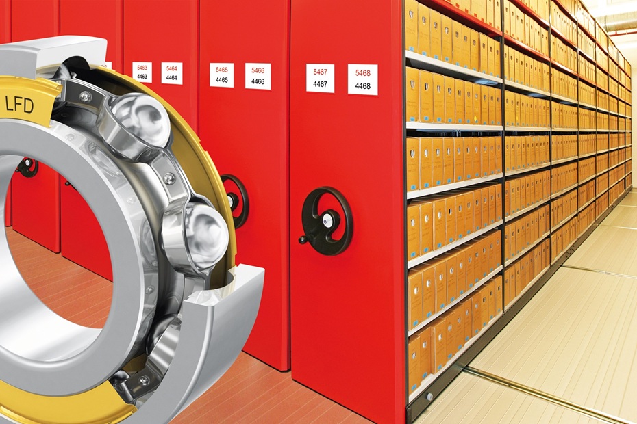 Ob in Behörden, Bibliotheken, Museen, Industriebetrieben oder wissenschaftlichen Einrichtungen: In vielen Branchen werden Regalanlagen benötigt. Rationelle Technik, maximaler Raumgewinn, Bedienerfreundlichkeit und Wirtschaftlichkeit sind die Vorzüge von speziell für den Einsatz in Archiven entwickelten Regalsystemen. LFD-Wälzlager haben sich dabei in den Bodenführungen zum Verschieben der Regale, aber auch in den Hand-Hebel-Betätigungen, die über einen Antrieb verstärkt werden und zum Verschieben der Regale dienen, bewährt.